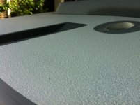 Tnx Richie. At last final work. I decided to contract the texturing job to a friend of mine (to technical for me). He's going to use a special sprayer to shoot gelcoat, no sand needed. It should look like factory work (I hope). These pics are of the masking job. Later I'll post pics of the finished work.