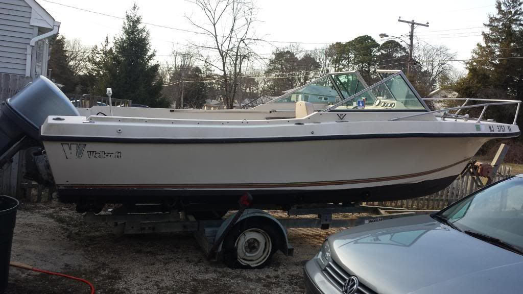 anyways i have recently purchased a '79 wellcraft v20 cuddy with an '85 yamaha precision blend 150 outboard. the boat needs a few things but it's the first vessel that i have ever owned and feel as though i got a good deal ($50 with trailer). boat seems solid but the under deck fuel tank is not being used (6 gal portable fuel tank on board). also there is premixed 2 stroke gas in the tank (which worries me; i'd like to have the precision blend system working, even though i am not familiar with it. i do have vro experience though. seats are missing on the boat and it looks like someone tried to patch bolt holes on the cockpit deck (poorly). paint is faded and wiring is super messy, but its nothing that can't be fixed. there are no electronics on the boat. tried to fire the yammie up yesterday after installing a good battery and it has stale gas so i'll need to rebuild the carbs before i can update on how it runs, but it will fire on starting fluid (i know not the best idea but i wanted to know if i rebuilt the carbs that it would run). the tilt support lever is also rusted up so i can't use it. plus i had a trailer tire blowout on her maiden (trailered) voyage home.
