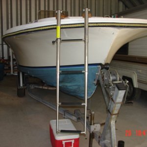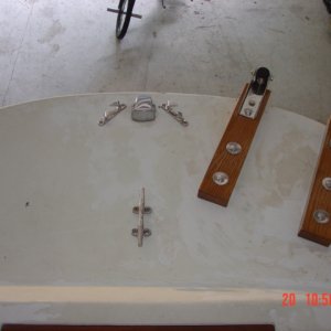 New Bow ladder down showing mounting hardware. Polished all bolts and washer myself.