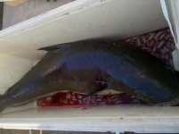 This is my girl with a 61 caught last monday the 5th. and the shot of the one in the cooler was a 75lb caught this past sunday. Its getting old standing on the top of the console on my duck boat.